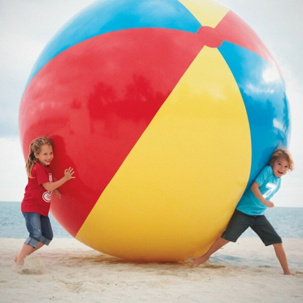 Вес этого гигантского надувного мяча - почти 14 килограммов. Диаметр - 3 (!) метра. Чтобы надуть это чудовище лучше воспользоваться электрическим насосом. Во избежание травм мышц рук, ног или разрыва лёгких (если вы вдруг решите сделать это ртом). С помощью этого мяча вы неплохо проведёте время, играя в самый невероятный футбол и даже волейбол (если хватит сил). Или просто катая его по береговой линии, наблюдая за разбегающимися в ужасе раздражающими вас отдыхающими. Прекрасным финалом станет уплывающий в морской закат мяч, никак не желающий скрываться из глаз по причине невероятных размеров.