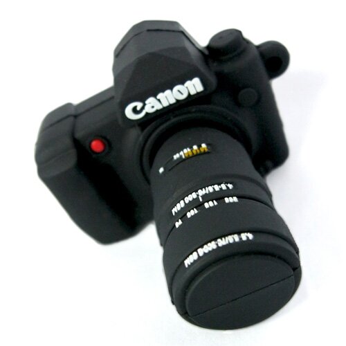 16-гигабайтная флешка в виде фотоаппарата Canon EOS 5D - новинка в линейке фотофлешек. Флешка размещается в детально проработанном объективе, который вставляется в "тушку" фотоаппарата на манер настоящего. 16 гигов позволят хранить или переносить информацию в достаточном количестве. Окружающие вас фотографы, полагаем, будут стонать от зависти.