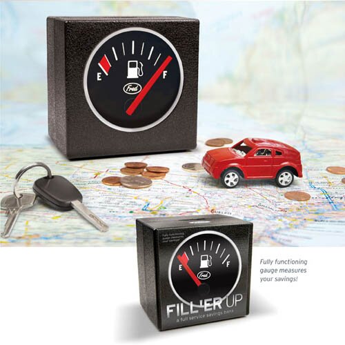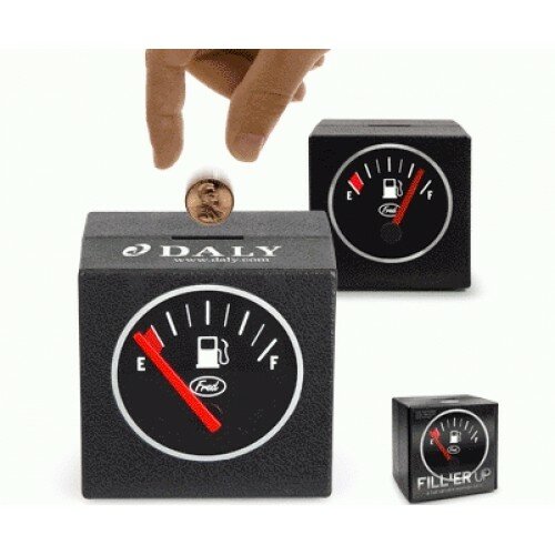 На этот раз изобретательных креативщиков привлекла идея совмещения автомобильного бака с копилкой для денег. Копилка Бензобак выглядит как измеритель уровня топлива автомобиля. Как и в случае с топливом, стрелка количества будет подниматься, с каждой новой опущенной монетой. То есть вы всегда будет в курсе количества денег в вашей копилке и не будете пытаться их вытащить без видимой на то причины.