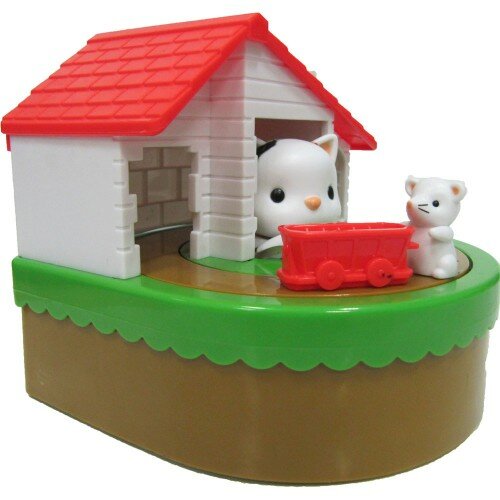 Именном на этом кошачье-мышачьем противостоянии и основана идея новейшей интерактивной копилки Кошки-Мышки! Кошка сидит в домике и наблюдает за мышкой, которая возит вокруг неё маленькую тележку. Вы кладёте в тележку монетку, нажимаете кнопку и мышка начинает свой путь, провозя добычу мимо кошки нервно постукивающей лапой. Действо сопровождается весёлой музыкой, а мышка провезя тележку под носом у кошки выгружает её в домике. То есть, в этой истории всё заканчивается благополучно (как минимум для мышки). То ли кошки стали более воспитанные и перестали ловить мышек, то ли мышам как-то удалось договориться с кошками и спокойно возить деньги под самым их носом.